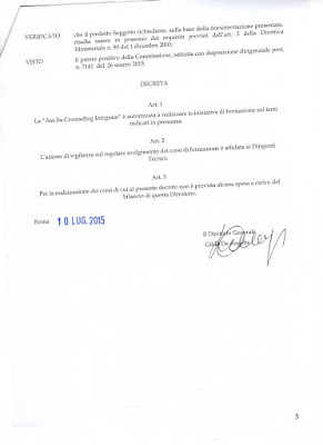L’ attestato ( n° 20 ORE ) dei Corsi di Counseling Schoolcounseling Riconosciuti MIUR D.M. 90//2003 sono riconosciuti come MODULI ESAUSTIVI e titoli anche per accedere a livelli corrispondenti nei Corsi della SCUOLA TRIENNALE di COUNSELING A.I.C.I. www.aiciitalia.it (Attività Professionale di cui alla Legge 14/01/2013 n.4) e validi per l’iscrizione al Registro Nazionale dei Counselor d A.N.Co .Re